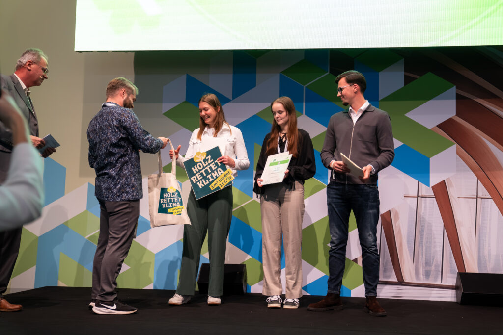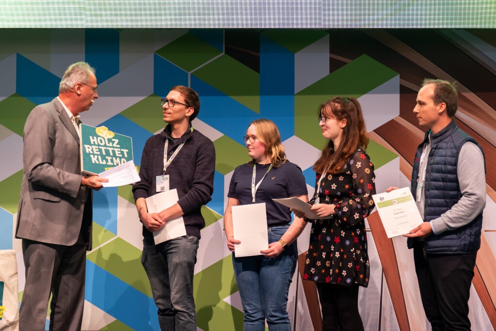 “ überreicht. Die Auszeichnung wurde vorgenommen durch den Juryvorsitzenden und Mitglied des GD Holz Vorstandes, Kai Cording, unterstützt durch Dimitri Gröpler von der Initiative. Die Gewinner-Teams 2025 lauten: