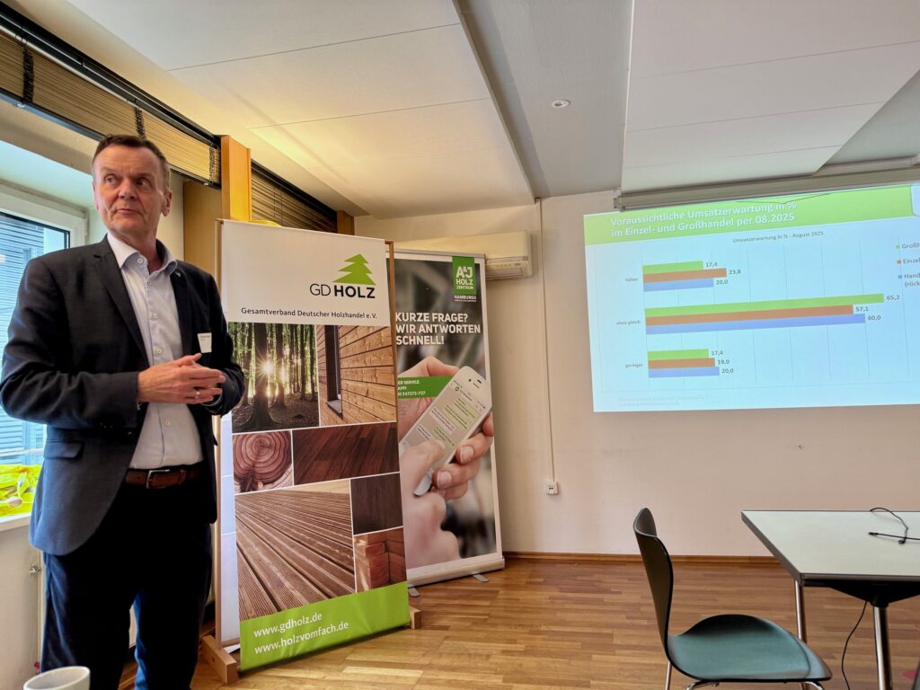 Zur Herbstversammlung der Wirtschaftsregion Nord konnte Sprecher Thomas Fahlbusch rund 30 Gäste beim A&J Holzzentrum in Hamburg begrüßen. Nach der Verleihung des Ausbildungspreises durch den Vorsitzenden des Holzhandelsverbands (HHV), Jürgen Klatt, erläuterte GD Holz Geschäftsführer Thomas Goebel die aktuelle Marktlage im Holzhandel und leitete die Diskussion über den Ausblick für die kommenden Monate. Die Mehrzahl der versammelten Holzhändler wusste von schwierigen zurückliegenden Monaten zu berichten. Die Hoffnung besteht jedoch, dass die Talsohle durchschritten sei, da sich die Lage vielenorts stabilisiert habe.